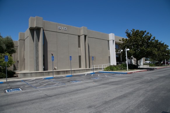 In the above picture you can just make out the words “First American Title,” who at one time occupied this building. When I walked around the back I was interested to see the words “San Mateo County Title Co.” painted there. Apparently at one time this was the main office of San Mateo County Title (they had a branch office in San Mateo as well). It appears that San Mateo County Title was eventually absorbed by First American Title, so finding the two names on the building makes sense.