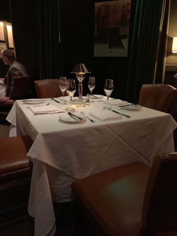 Selby’s is an elegant, white-tablecloth kind of place. Curiously, for a restaurant of this caliber, I found the place surprisingly noisy. Perhaps that owes something to the building’s interior layout — the dining room is a two-story affair, with a large open atrium that allows sounds from downstairs to join with that originating from the upstairs tables — or perhaps it is just that people have forgotten how to use “indoor voices” in places like this. Regardless, my wife and I plus our two dining companions were able to carry on a conversation throughout the meal without too much trouble, so perhaps it is just me. I will note that our table was upstairs; perhaps the acoustics are better on the ground floor.