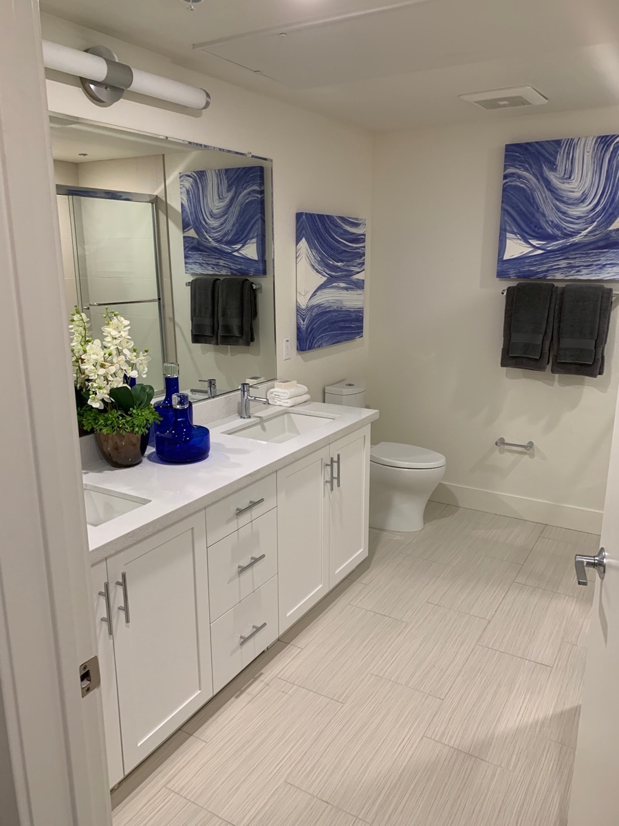 Getting back to Wheeler Plaza, Raymond, the salesman I spoke to, was happy to tell me all about the project. Unlike what is being built in Redwood City, each of these condominiums exists entirely on one level. The project’s 109 condos can be found on floors three through five of the building, and have a variety of sizes and floor plans. Although I couldn’t actually see any of them, I was able to see the next-best thing: the Sales Gallery includes a complete mock-up of a one-bedroom unit, right down to the front door and the doorbell with the unit’s number plate. So I essentially got to tour one of their smaller units.