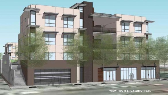 My fourth and final residential project, like the last two, is also on El Camino Real, and this one is back within the city limits. But when you see the rendering, you’ll immediately see what makes this one different from the other three: