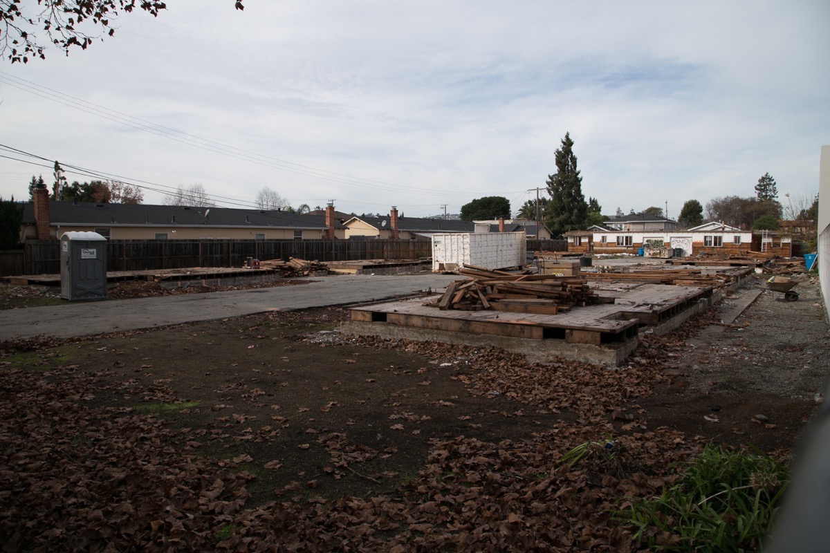 I also looked in on 211 Vera Ave., where a developer has gotten approval to build ten townhouses. Although the demolition of the small houses that once stood on the parcel was completed many months ago, the lot continues to sit empty. One block down, however, at 112 Vera Ave. the handful of small houses arranged around a common driveway that had deteriorated and become a nuisance are no longer. I had thought that the property owner was just going to fix them up, and at one point the dozen or so little houses had been stripped to their studs. But after a few weeks of them sitting there in skeletal form, suddenly they’ve been torn down to their foundations. Presumably the owner had hoped to preserve their framing, but upon inspection realized that it was not in good enough shape to preserve. Whether or not the foundations are worth saving, we’ll have to see. Foundations are all that is left at the moment, and as yet there is no sign that the work has shifted from a demolition phase to a construction phase.