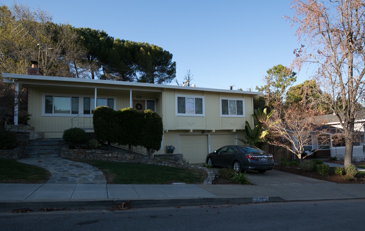 I’ve talked about nearly all of the aspects of the Farm Hill neighborhood; all except what makes up the lion’s share of the neighborhood, which are its residences. The Farm Hill neighborhood is filled primarily with single-family homes, although it contains a number of multi-family developments as well (apartments and condominiums). The homes all appear to be of a similar age, indicating that this part of Redwood City was largely developed within a tight timeframe. Because much of the neighborhood is draped along the hills on the western edge of Redwood City, you find numerous homes that accommodate the sloping land, such as this one: