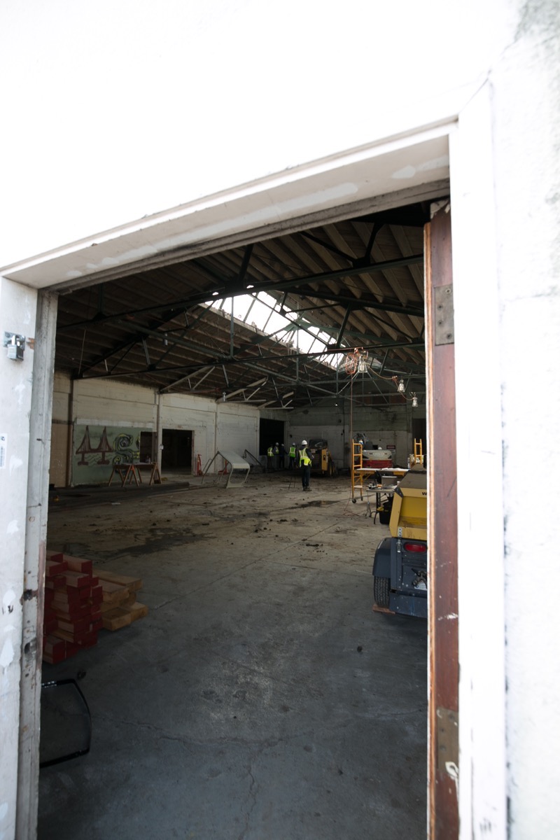 I did manage to get a peek inside the building while I was there. It’s a really great space. I’m delighted to say that the developer plans to preserve the roof trusses you can see in the following picture: