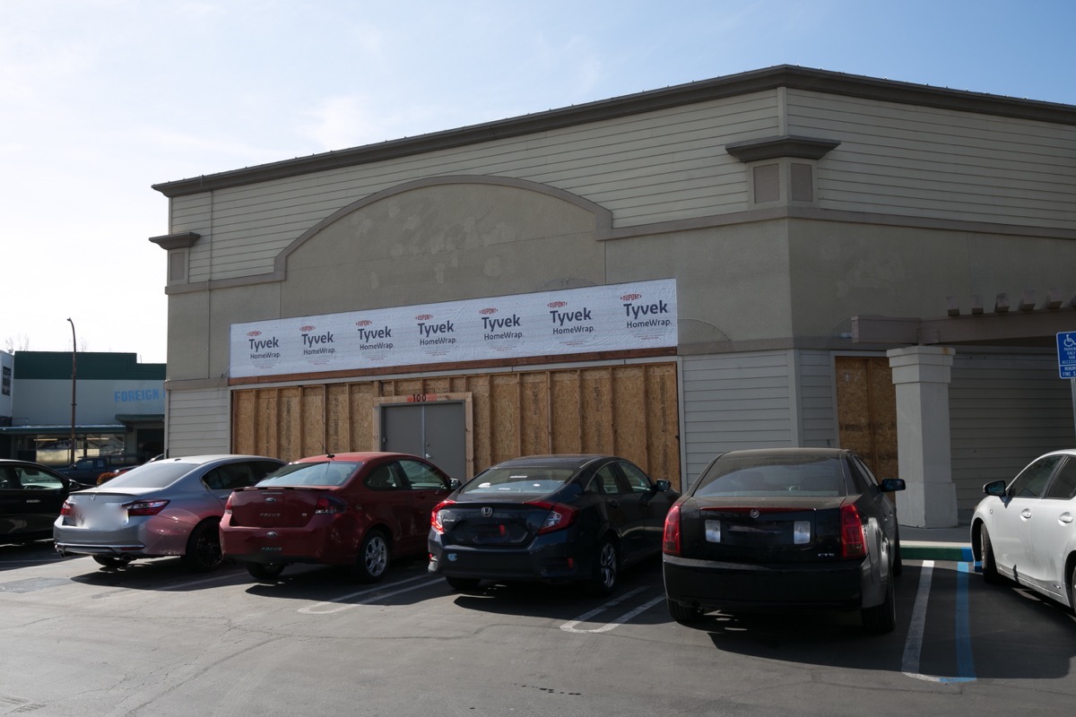 That bit of Tyvek you see in the photograph, along with the board beneath it, are the only changes I can see when compared with what was there in October. I of course took a peek inside (you can see in through one of the windows on the El Camino Real side of the building) but I don’t see any changes there. So although this looks suspiciously like someone is prepping the front of the building for a new sign, there is still so much work yet to go on this space that sign work seems a bit premature. It is progress, but so little that I have to wonder if this work is part of the bank project, or simply something that the owners of Sequoia Station needed to do for maintenance purposes.