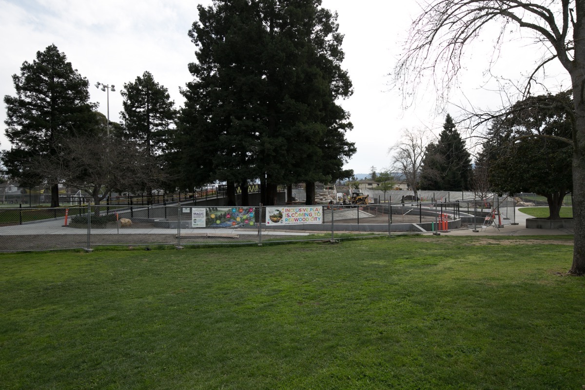 This week I dropped by the site of the Magical Bridge Playground, which is being constructed on the Valota Road side of Red Morton Park. Various delays (some related to weather) have caused the opening date to be pushed back. The Magical Bridge Foundation now anticipates that it will be complete and open to the public sometime this spring. Although the play equipment and the playhouse have yet to be installed, the project is certainly looking impressive: