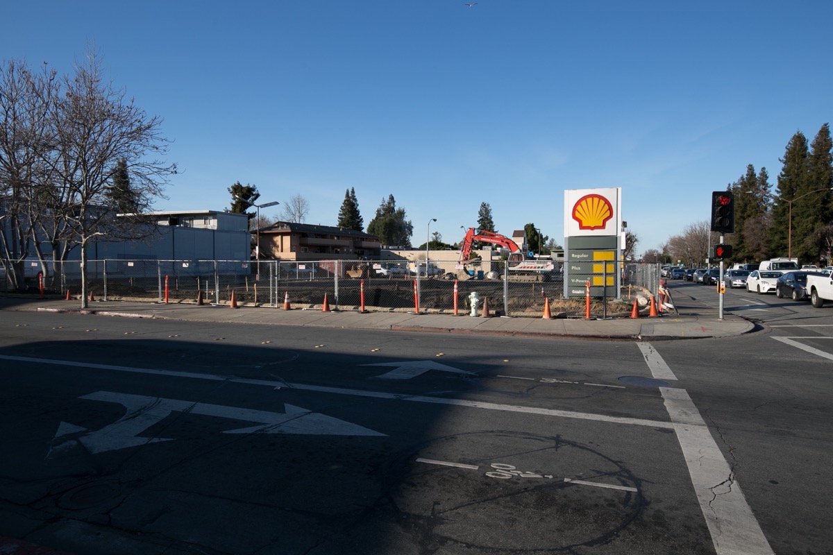 Continuing down Woodside Road, I came to the Hudson Street intersection. Here, the Shell gas station has been completely torn out. The two signs along the Woodside Road side of the property still stand, however, signaling that they are probably just building an all-new gas station here.