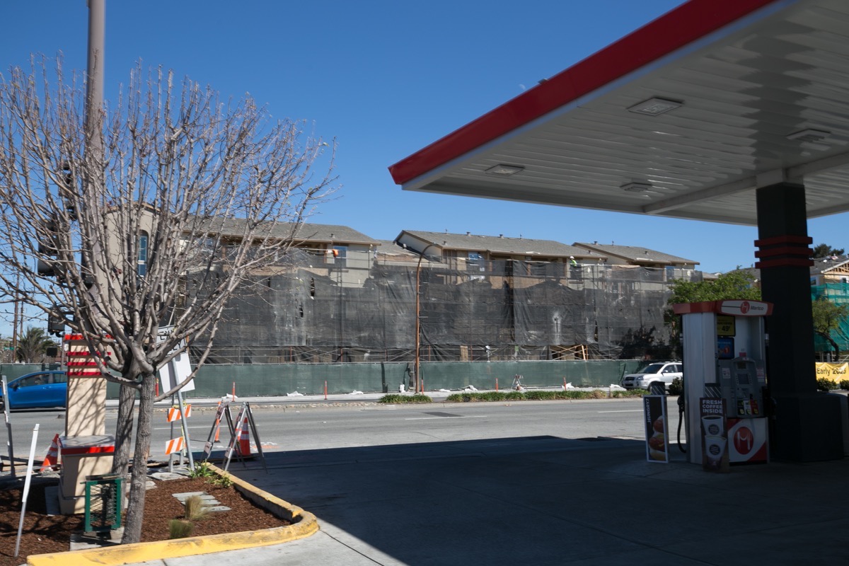 Then there’s the 33-unit condominium project on the former site of Honda Redwood City. The last time I wrote about them I noted that the building along El Camino Real appeared nearly done, at least from the outside, and I included this photograph: