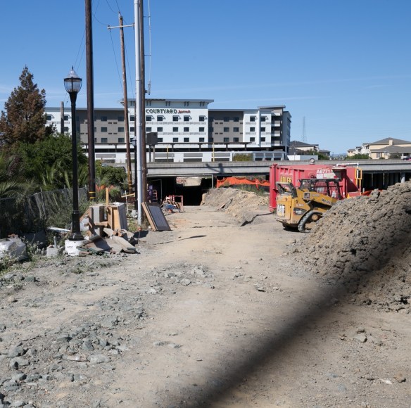 Heading over to downtown Redwood City, I passed by 1180 Main St. (across from the Main & Elm restaurant), where a new three-story building is to be constructed. During the month-long construction halt this project stopped, and when I went by on Tuesday I didn’t see any evidence of it restarting. However, I was in the area on Friday and checked back in, and there was plenty of work going on. So chalk up another project that is back underway.
