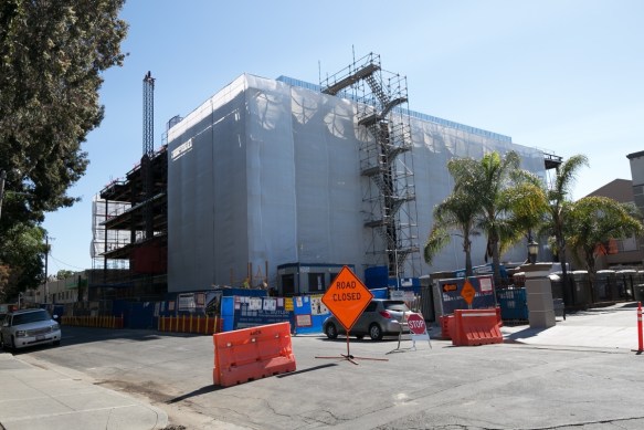There are 15 projects listed as “Under Construction” on Redwood City’s Development Projects web page. Of them, two I consider to be complete (2075 Broadway and “Stanford in Redwood City”), leaving 13. One I haven’t checked on lately (“Leahy Apartments Upgrade”). Of the remaining 12, only 353 Main Street was not actively being worked on when I went by this week (and it is certainly underway; it just seems to have stalled for the moment). Plus, three of the six projects listed as “Approved” (910 Woodside Road, “Strada – 1548 Maple Street”, and “Broadway Plaza”) are actively in various stages of site preparation.