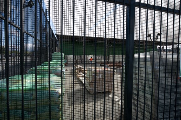 From there I decided to walk back and peek in on our Outdoor Supply Hardware (OSH) store. They, at least, are moving right along: while there I watched two people putting together shelving in the outdoor, garden section of the store, and saw similar activity both inside the store itself and inside the little drive-through area across the parking lot. From what I could see the shelves were being filled with items to sell almost as quickly as they were being built: