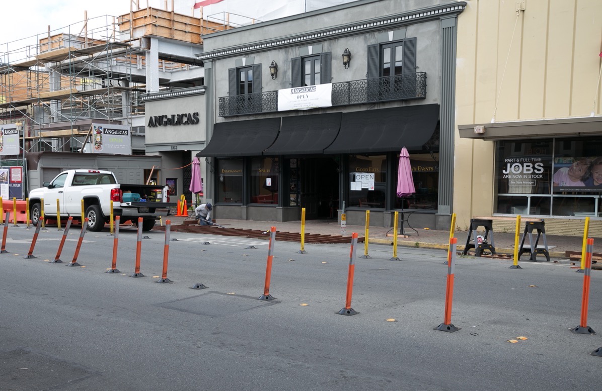 At least one restaurant isn’t waiting for the City Council to take action, it seems. As I walked down Main Street I watched a contractor building a platform in the parking spaces in front of Angelicas, presumably so that they’ll be able to put some of their seating out there, as a number of restaurants along Broadway have done in the past:
