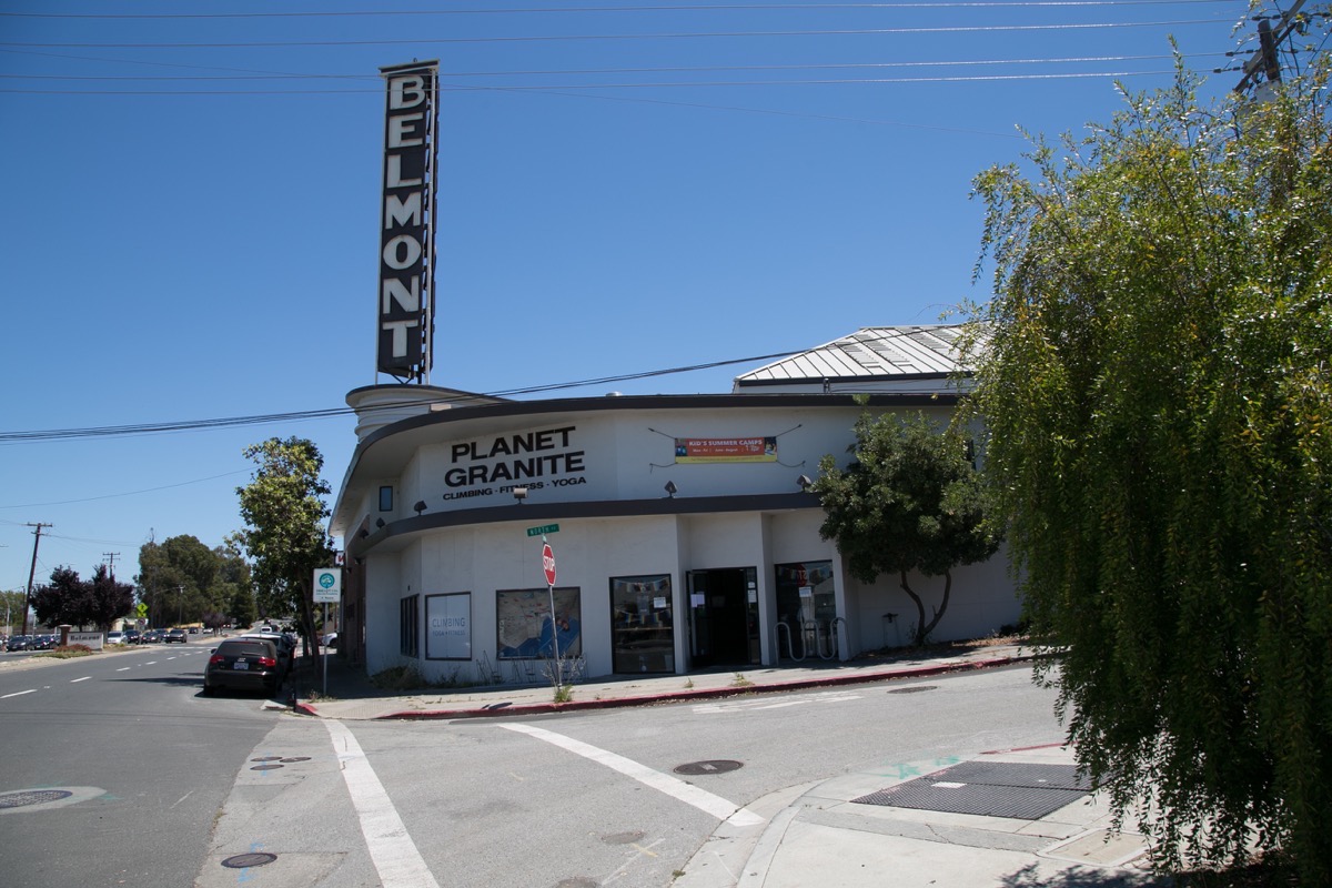 Nowadays this is a Planet Granite climbing gym, but I’m pleased that this place still looks like a theater. I have clear memories of seeing films here back when it was a (then rather ordinary) theater, in its latter incarnation as the Belmont Cinemas Three. The theaters closed in 1997.