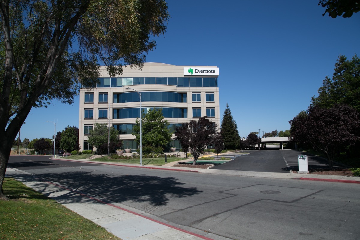 I should mention that although the theater building is gone, the theater’s original two-level parking garage still stands and is being used by Evernote employees. You can see it in the above photograph, just to the right of the office building.