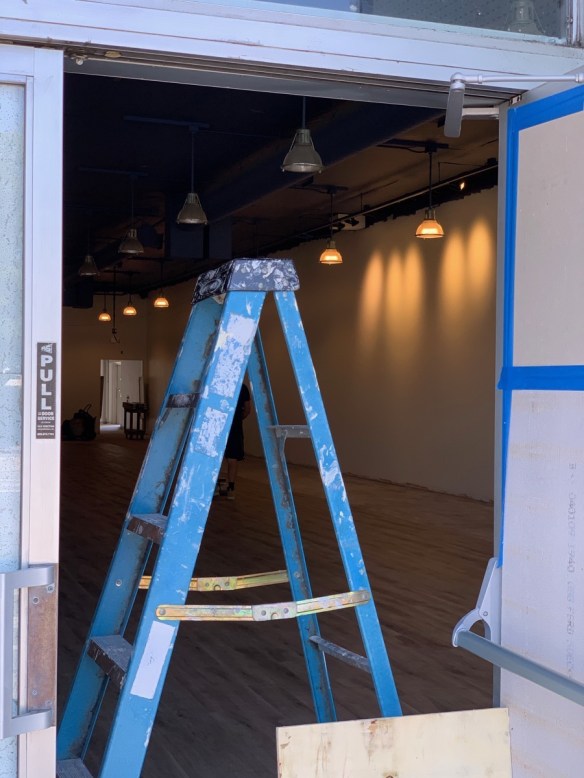 Across El Camino Real and down a few blocks is the long-empty Aaron Brothers framing and art supply building. Crafts retailer Michaels, owner of the Aaron Brothers brand, closed the independent stores back in mid-2018 (they still use the brand for “store-within-a-store” framing shops in their Michaels stores); this particular location has sat empty, with a “for lease” sign attached, since then. No longer, however! The “for lease” sign appears to be gone, and the interior of the freestanding building at the corner of El Camino Real and Roosevelt Avenue is getting a nice makeover. When I was there, there were lights on inside and out, the walls looked freshly painted, and a guy was hard at work refinishing the (new, I think) wood floors: