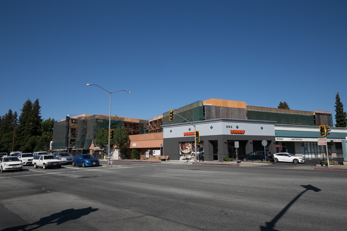 In a completely separate part of town, another project that halted for a very long time — so long that I actually thought that the incoming tenant had changed their mind and pulled out of the project — was the Dunkin Donuts (or just Dunkin’, now) store at the corner of Woodside Road and Central Avenue. But suddenly, after months and months of no visible progress, they’re open: