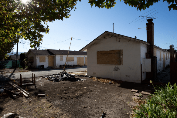 It will go by in a flash — all of the items listed under “Consent Calendar” are generally dispatched with a single vote — but I’ll be rooting for item 6.D., “Vacation of easement for the project at 112 Vera Avenue.” I’ve been keeping an eye on this particular site, which is located on Vera Avenue just behind the Firestone Auto Care center on El Camino Real, for years. It once held five two-unit apartments, but years ago they fell into disrepair and became a major source of blight: