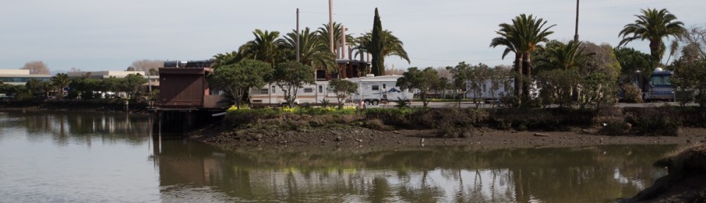 Not all of Redwood City’s construction has been happening downtown, though. For instance, consider Blu Harbor, out at the end of Bair Island Road on the east side of the freeway. By the time I went out to photograph Pete’s Harbor (as the site was then known), although the project had yet to get underway, fences were up to keep the general public out. Somewhat undeterred, I took some pictures through the fence.