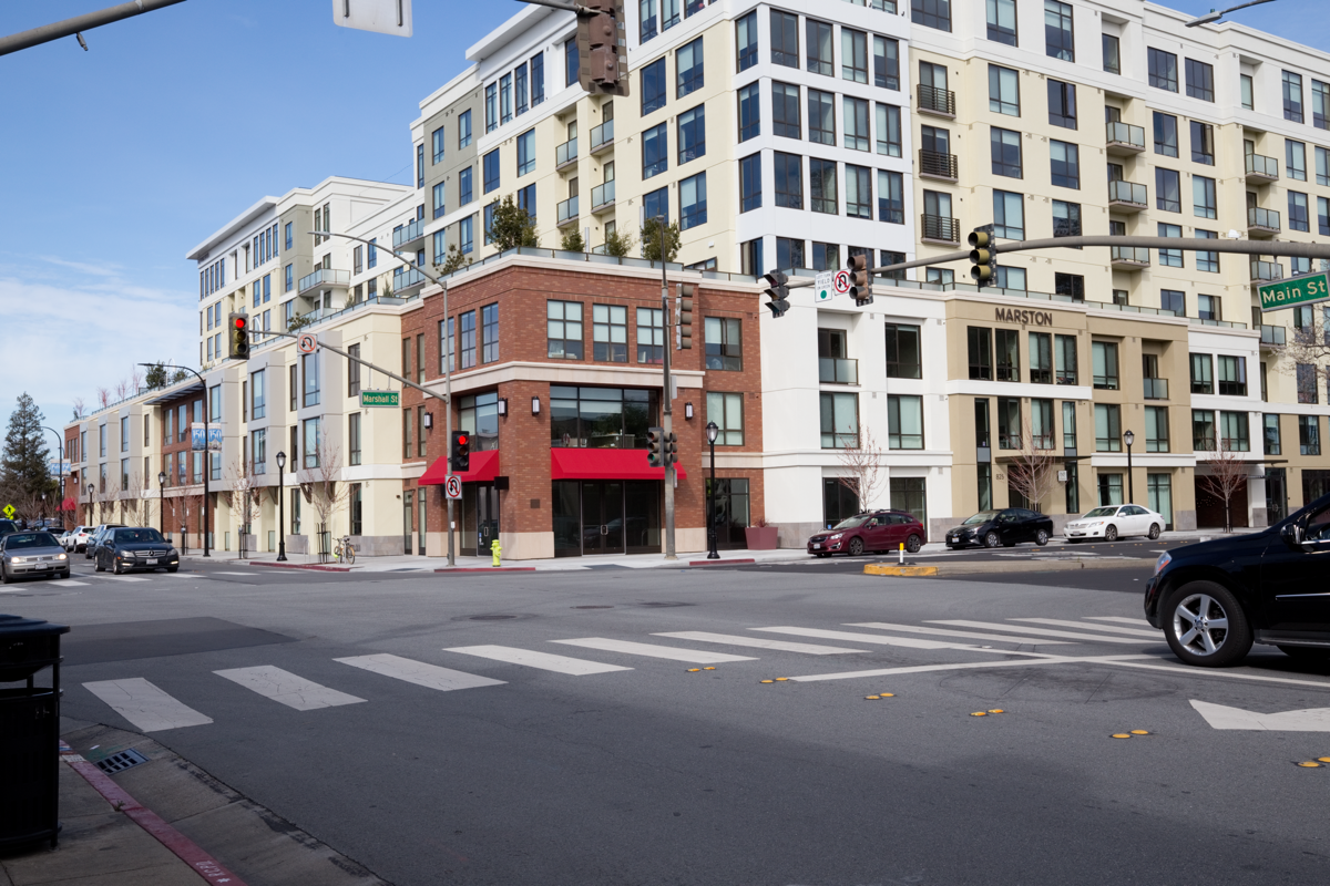 These, of course, are the infamous “Box” buildings — more formerly known as “Crossing 900” since the building on the left is located at 900 Jefferson Avenue while the building on the right is located at 900 Middlefield Road (and of course the entire development is located where those two streets cross).