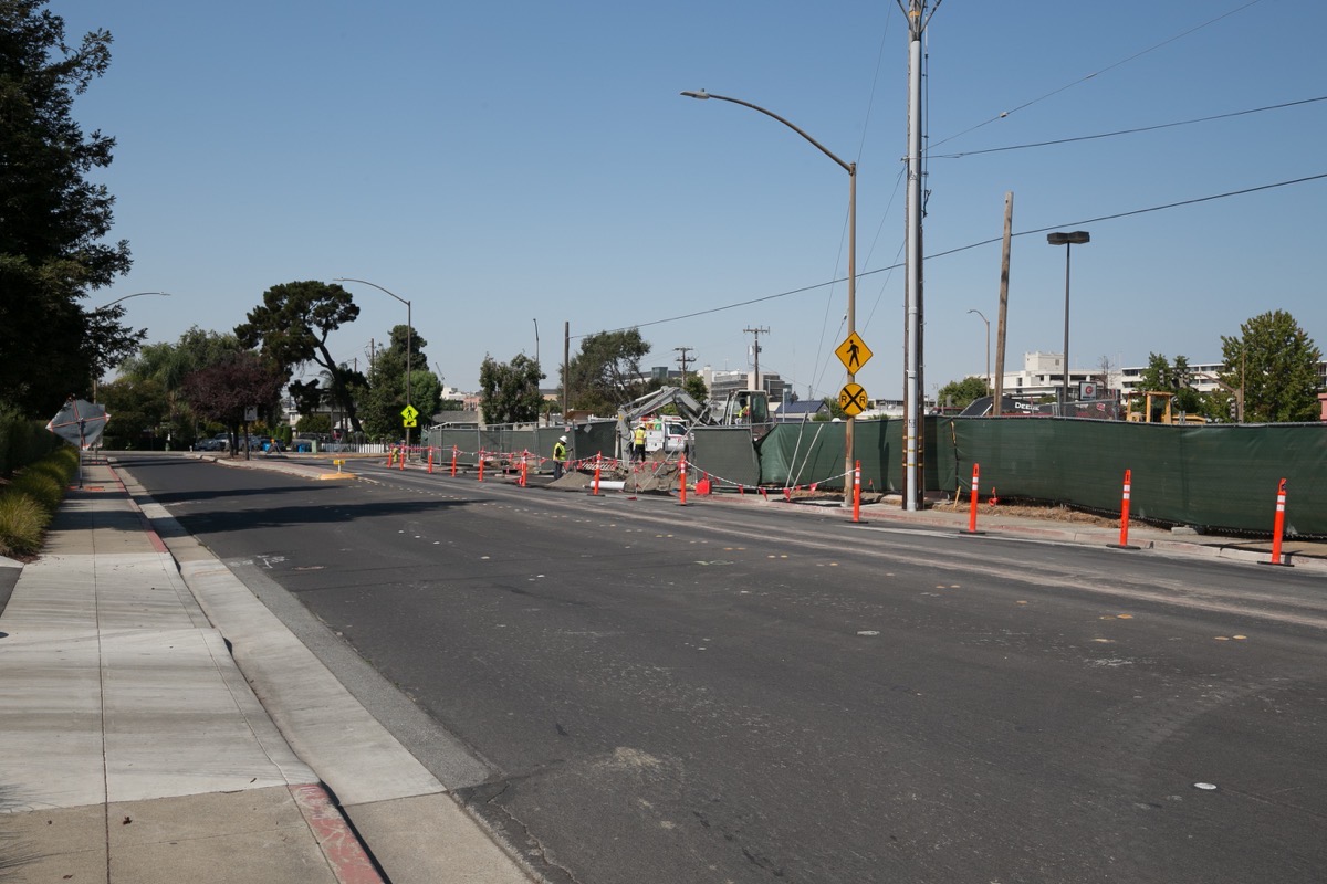 For now, the developer is focusing on what they’ve termed “Phase 1”: the project’s three residential (with some retail) buildings. Those buildings will be placed towards the Chestnut Street end of the property. Once they are complete, and once the existing CVS drugstore down at the Woodside Road end has moved to its planned new home across Woodside Road, the drugstore will be torn down and the office buildings will be constructed. (While there I took a look across the street at where CVS is supposed to go, but there is nothing going on over there as yet.) The Sobrato Organization, this project’s developer, expects to complete Phase 1 in the spring of 2023. With Phase 2 occurring after that, expect construction on this site for quite a few years yet.