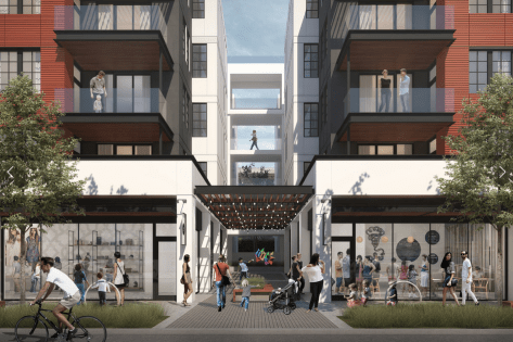 The resulting two buildings will have a rather modern look, as shown in this rendering from the Veev website: