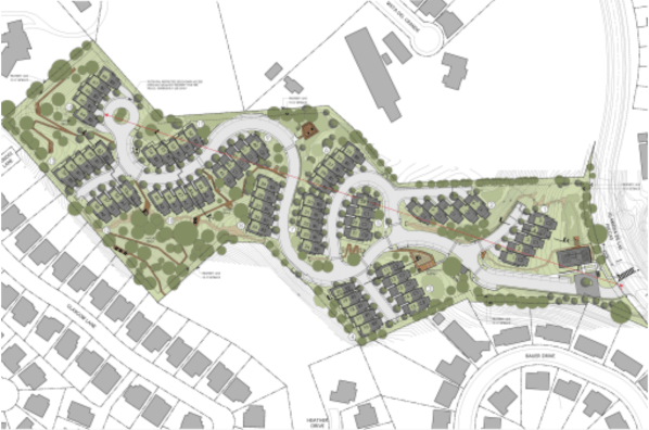As for the final project, it’s a big one: a 68-unit townhouse complex in which the units are “organized into separate groups of 4-5 buildings dispersed across the property” at 808 Alameda de las Pulgas: the former location of the Black Mountain Spring Water Company. Of the site’s 11.4 acres, 2.4 of them would be dedicated as a Natural State area, and would be undisturbed by the construction process. The project includes public walking trails, meaning that once it is complete those of us who won’t be living in the complex will still be able to walk through and get some enjoyment from this fascinating and unique parcel. This particular project is still early in the planning process and so there don’t yet appear to be plans for the individual buildings, but the city does have a site plan on their website that shows how the various buildings may end up being laid out: