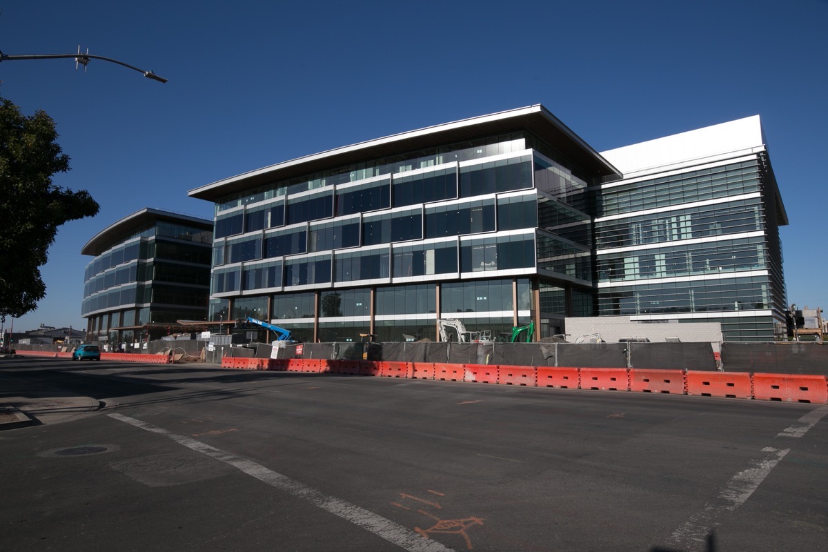 Hopefully the contractors will get the street back to normal soon while they continue working on the interior buildout of this biotech facility. At least two companies have pre-leased space in this complex: ChemoCentryx Inc. has leased 96,000 square feet, while Allakos Inc. has leased 98,133 square feet (together the two buildings comprise some 526,178 square feet). When those companies might actually move in is anyone’s guess given the pandemic, but Allakos had been planning for a mid-2021 move-in, which may still work.