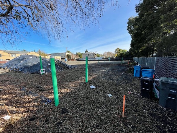 As you can probably tell, this site is very close to El Camino Real; it sits right behind a tire and auto shop. At one time there were five single-story duplexes on this lot (the two units in each duplex sat side-by-side, sharing one common wall), and the developer aimed to preserve them. In August of 2019 demolition began. Although the developer had hoped to preserve some of the buildings’ original structure, they quickly realized that the little buildings were too far gone. Thus, the buildings were stripped to their very foundations. For a very brief time some work was done to rehabilitate those foundations, but that work soon stopped, and the site has sat, just as it appears above, for months now.