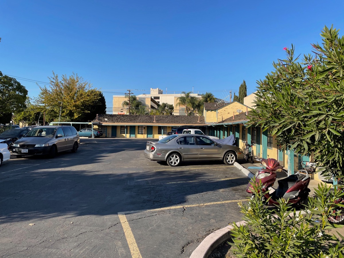 The last project on my list is the one that I didn’t visit on foot this week: the proposed four-story, 90-room Holiday Inn Express & Suites hotel to be built in place of Redwood City’s Garden Motel at the corner of Broadway and Beech Street (this project is not to be confused with the other recently approved hotel project in Redwood City: a four-story, 91-room hotel at the corner of Veterans Boulevard and Brewster Avenue). Today the rather tired 18-room Garden Motel looks like this: