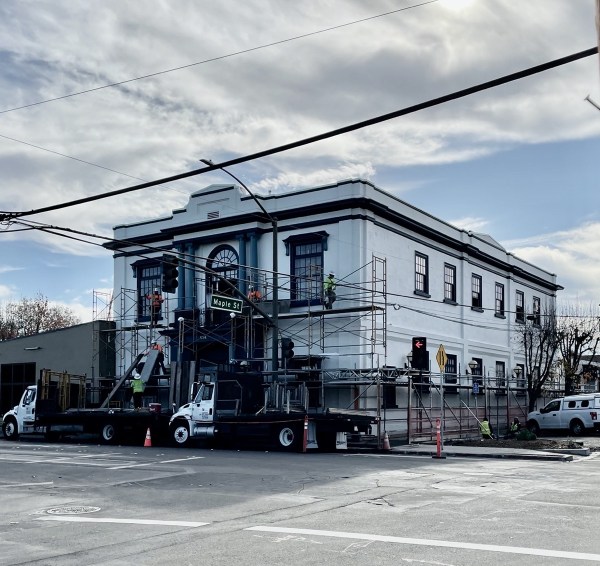 Fortunately, over the years I’ve put together a (very) small library of historical reference books on the area that I can refer to. As well, the internet is often helpful when researching buildings and people. Thus, when I discovered that the construction fabric and scaffolding were being taken down from one of Redwood City’s historical buildings, as I did last Tuesday, I can still provide you with at least some information about the building and its history: