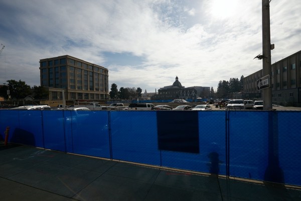 From Veterans Blvd. down to Marshall St., all of the property on the right hand side of the street makes up County Center, where the seat of San Mateo County is located. There are a number of county buildings here, and more on the way. At the corner of Middlefield Rd. and Marshall St. the county has cleared away a number of smaller buildings to reveal a large lot upon which they will shortly be constructing a new county office building for some 600 employees: