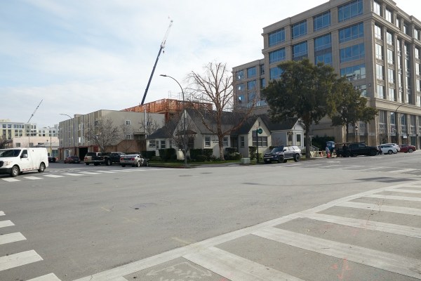 (For orientation purposes, Middlefield Rd. runs along the left side of the picture, between this lot and the multi-story office building [601 Marshall St.] you can see in the above image.)