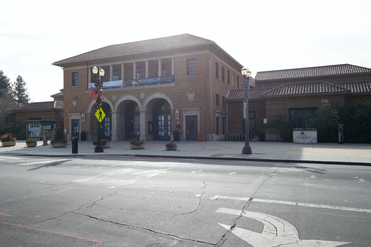 After turning left and walking to the end of the block, one then comes to another important intersection: Jefferson Ave. The four corners here hold the Box buildings, the Century Theatres building, Redwood City’s City Hall, and our lovely downtown library, which at one time was a firehouse: