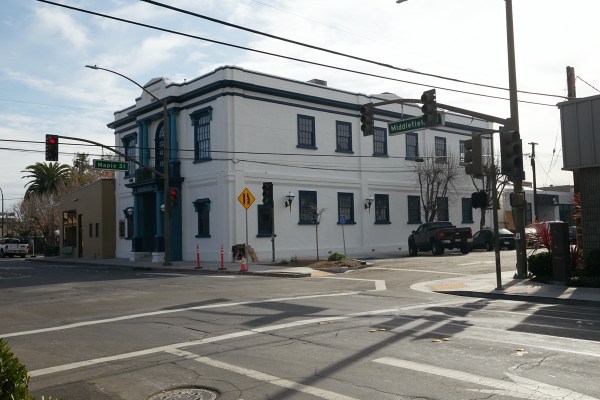 Middlefield Rd. appears to dead-end into these buildings, but, rather strangely, if you turn left you’ll find that you are still on Middlefield Rd. (turning right puts you on Winslow St.). I have no idea why some streets make 90-degree turns like this while still retaining their name. I tried to do some research on this, but had little luck. Once COVID is mostly behind us and I can get back into the Local History Room at the downtown public library, I hopefully will be able to come up with an answer. What I did learn, though, from looking at map of downtown Redwood CIty from 1897, is that back then Middlefield Rd. didn’t exist. The portion I had just walked along had been known as 2nd, and the bit I was about to turn left onto wasn’t even a street back then. As you continue along today’s Middlefield Rd. and get to Main St. you finally get to where there was a street back then, but it wasn’t called Middlefield; it was called Phelps.