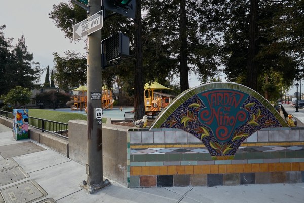 Incidentally, there is a small fenced-off dirt lot immediately adjacent to this park along Middlefield Rd. At one time there was a run-down house on this lot, but the city purchased the property, cleared it, and made plans for an expansion of this little park. Before the expansion could get underway, however, the city decided to undertake it’s Middlefield Road Phase 1 Underground Utility District and Streetscape Project, and the empty lot proved too tempting as a place to stage materials and equipment for the project. Thus, until recently it had been used for that project, which is slowly nearing completion. Now, the lot once again stands empty; hopefully the city will soon extend Jardin de Niños park as it once intended.