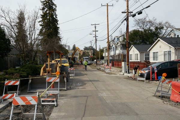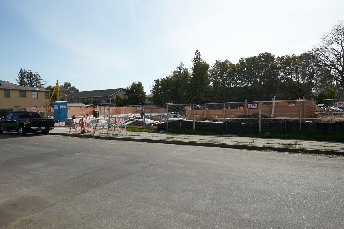 One project I’ve been watching for a long time is a ten-unit townhouse project slated for the corner of Vera Avenue and Adams Street. This project was approved by the Planning Commission in December of 2018, but the building permits weren’t issued until last December — two years later. I had almost given up on this project ever being built, but once the contractor received those permits, they got right to work. This week, when I walked by, the foundation slabs had been poured, and workers were putting up what I assume are forms for the concrete walls that will make up at least part of each unit’s ground floor: