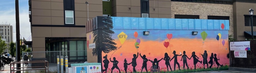 It is a beautiful image in its own right, made even more beautiful by the fact that it was conceived and implemented by a group of fourth-grade students from Adelante-Selby Spanish Immersion School under the auspices of Art in Action. The mural itself is named “Connection, Community, and Hope,” and is accompanied by the delightful little design they painted on the adjacent electrical transformer, which the kids have “transformed” into an ice cream truck. Bravo!