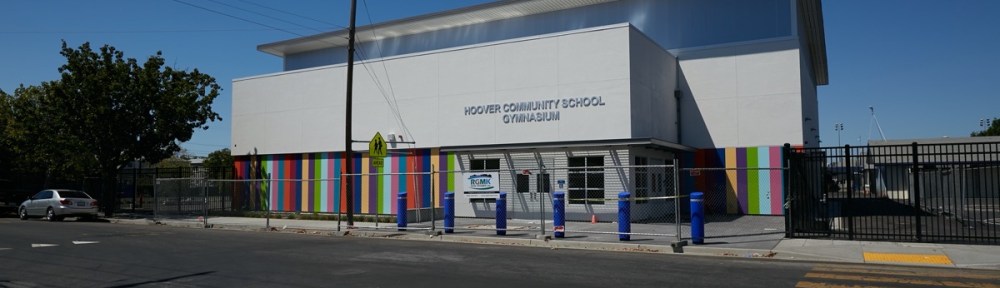 With all of the commercial development going on around Redwood City, it’s easy to overlook the fact that our schools are getting some major upgrades as well. I often walk by the Orion Alternative Elementary School campus (formerly John Gill) and continue to be awed by the massive construction project that is occurring there. As well, my wife and I are regular shoppers at Signona’s Farmers Market (on Middlefield Road, across from Costco), and we usually end up coming in from the back, by Hoover Community School. Over the past year or so we watched the construction of a beautiful new gymnasium on that campus. Although it seems a bit odd to see such lavish construction when the school district has just gone through a round of campus closures and school consolidations, the consolidations put more emphasis on the campuses that are still open, and in any case the projects are paid for out of bond money: Measure T funds.