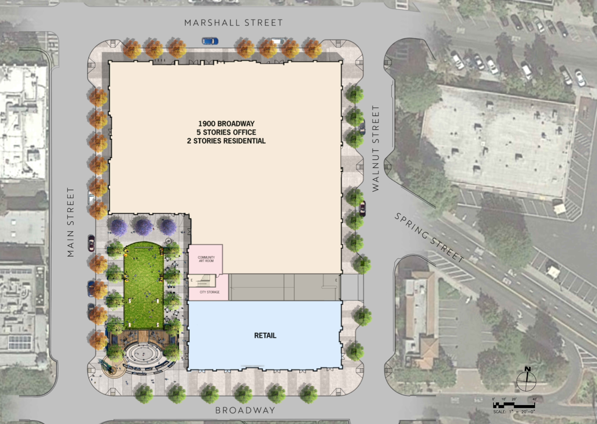 1. If the council allows 1900 Broadway to include Spring St in their lot, then I hope the council takes a closer look at the traffic issues on Walnut, as you have detailed. Walnut should be widened to be a 2-way 4 lane street between Broadway and Marshall, not just between Spring and Marshall. This would actually require them taking some land from the project’s eastern border and thus require the building to be narrowed just a bit. This would necessitate a revision to the project, at least that’s what it looks like in their rendering.