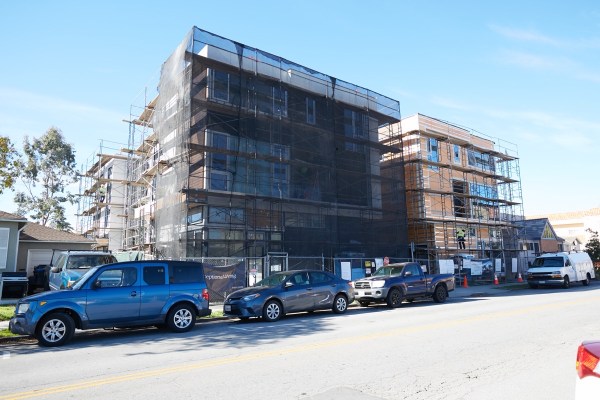 Over behind the Bianchini’s Market, at the corner of Walnut and Olive streets, the 24-unit Walnut Studios apartment building is rapidly nearing completion. This building, which will contain 23 affordable studio units and one market-rate unit for an onsite staff member, replaced a two-story, six-unit affordable building.