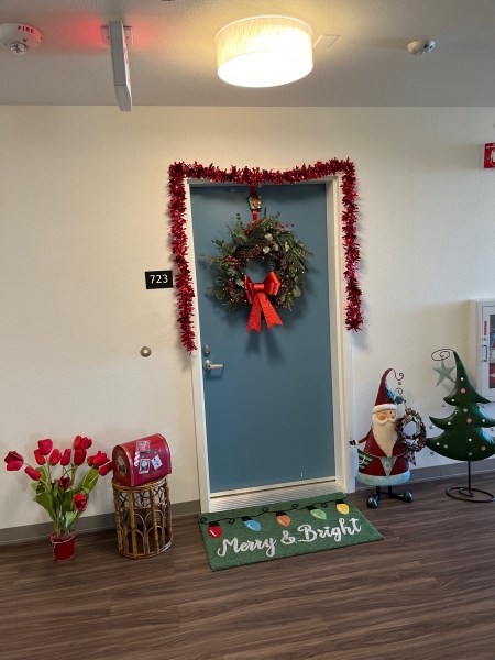 2. Love your column every week, but what a great surprise to see my apartment door decorations at Arroyo Green apartments. Wish the lights on the wreath and the garland had been on.