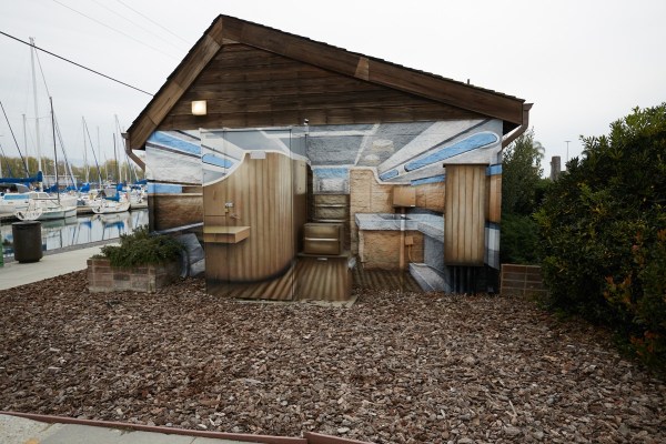 And although I may have posted this picture some time ago — the work to paint this small mural was done quite a while ago, as I recall — I just love this trompe-l’oeil image on the side of the restroom building in the Marina: