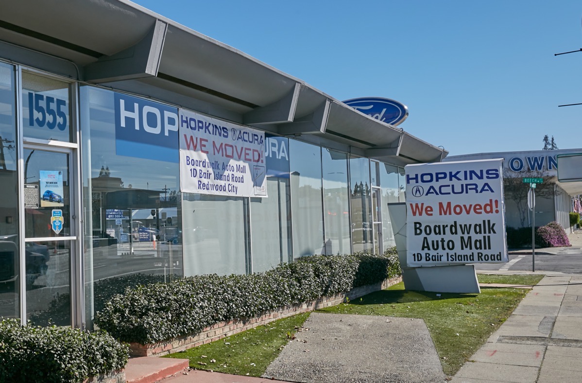 There is a temporary “Hopkins Acura” banner on the side of this building (which is just past the old Century Park 12 Theaters site); this is now where you’ll find new and used Acura vehicles, as well as where you’ll get those vehicles serviced.