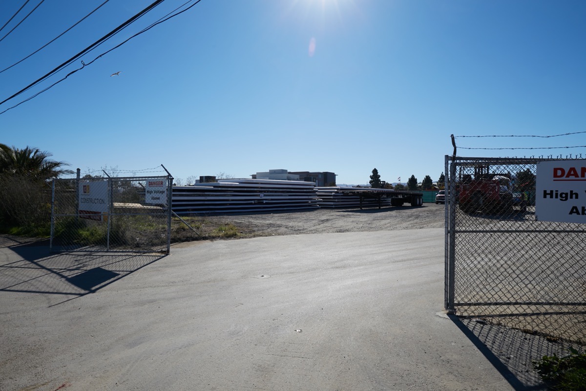 I’m guessing that these will be the foundations for the portable units that will make up the Navigation Center. When complete the Navigation Center will consist of a large number of individual shipping-container-sized prefab buildings, most of which will contain bedrooms, but some that will have bathrooms and others that will have kitchens and other common facilities. If the contractor doesn’t have to pour concrete, but can simply plop these slabs down on a level surface and then place the prefab buildings onto them, construction of the Navigation Center will go swiftly indeed. I’ll be watching to see if my guess is correct, or whether these things have some other function.