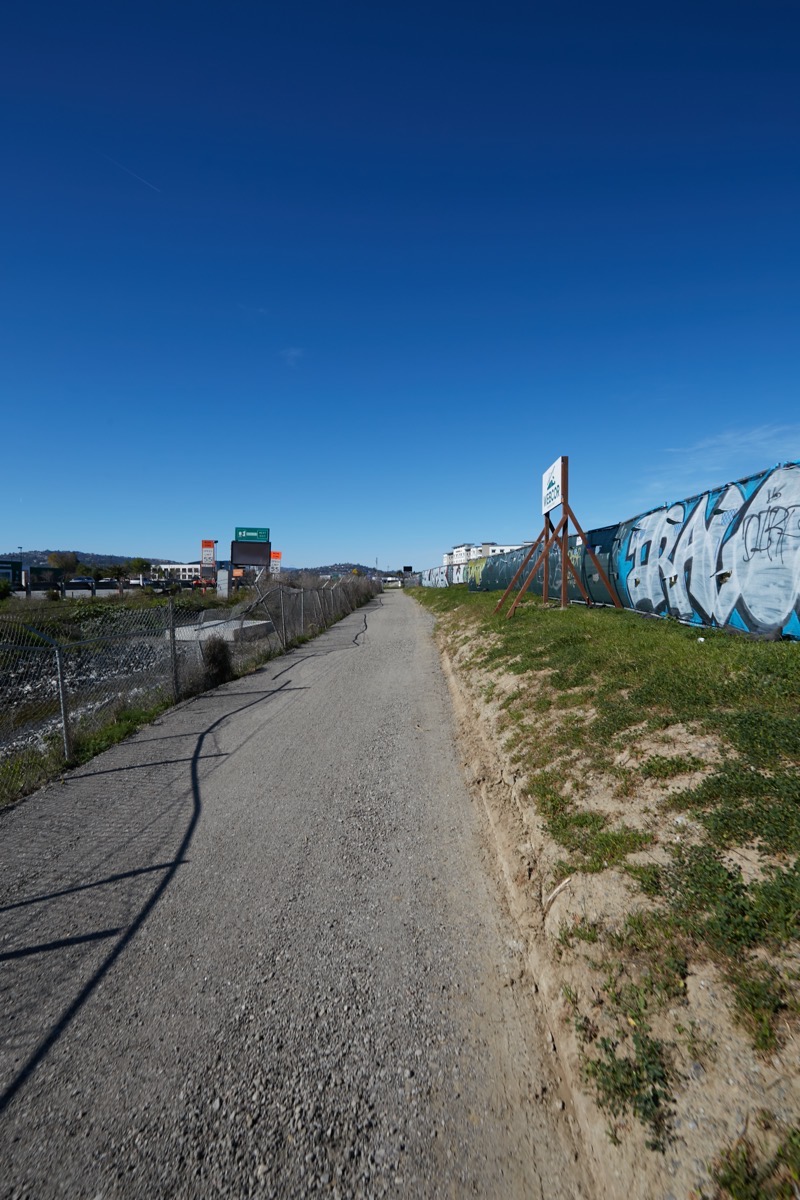 The last time I visited the site, I walked along a path that ran through the middle of the 1548 Maple Street project site and reached Maple Street directly across from the now-closed gate to the county Navigation Center site. Not this week, though: the walking/biking path has been rerouted completely around the 1548 Maple St. site so that now, after crossing beneath Highway 101 (using the new underpass, of course!) and then crossing over Redwood Creek using the Bridge to Nowhere, the path runs right up against Highway 101 and reaches Maple Street where it dead-ends at the highway. That path partly follows the future route of Blomquist Street, and is wide, flat, and clear: