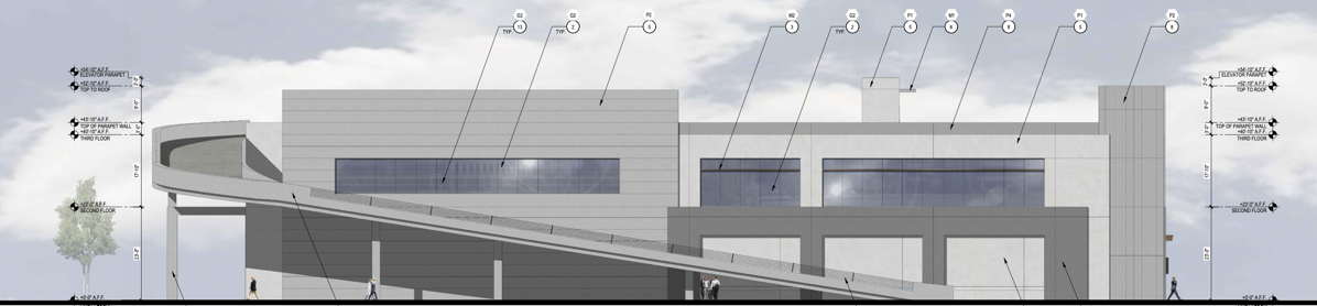 (This ramp should be clearly visible from the CVS drugstore parking lot.) As you can see, the ramp rises up and then wraps around the rear of the building.