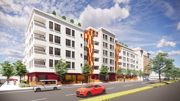 Here is a rendering shown the rear of the building, where most of the common outdoor space can be most easily seen: