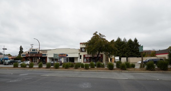 On Thursday the Architectural Advisory Committee (AAC) reviewed the so-called “Redwood City Discovery” project, which is the apartment building planned for 1330 El Camino Real. That address identifies just one of the four parcels that will be taken up by this new building, assuming it is approved by the city (AAC review is an early step in the approval process; it will still need to go before the Planning Commission and/or the City Council for ultimate approval). Three of the affected parcels lie along El Camino Real, and today are home to Happy Donuts, Cycle Gear, and The Record Man: