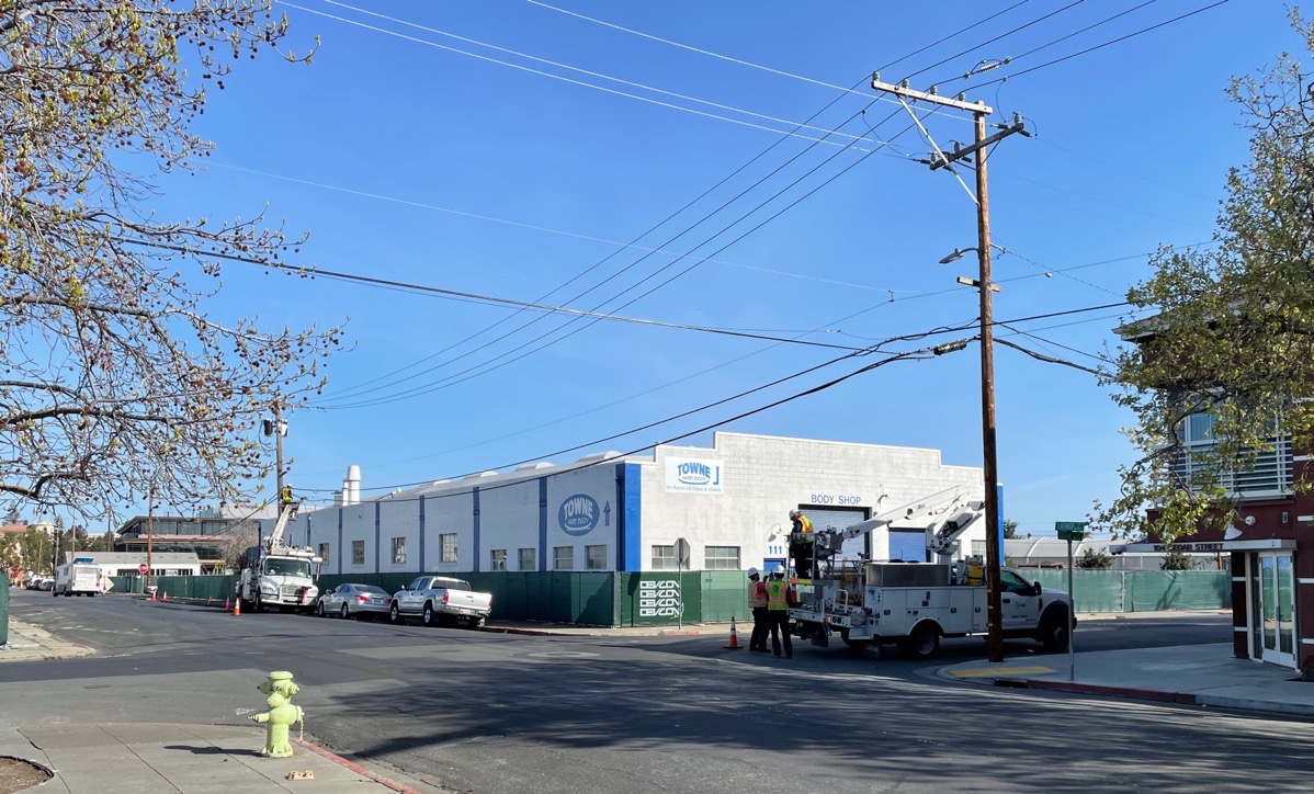 The 1200 Marsh Road project is only at the proposal stage, so it’ll be some time before any construction gets underway (assuming the project makes it to that point). But other projects are of course underway in Redwood City, although for some of them the signs of activity are a bit subtle. Just today (Friday), for instance, I observed AT&T taking down their cables from the poles that run through the ELCO Yards project: