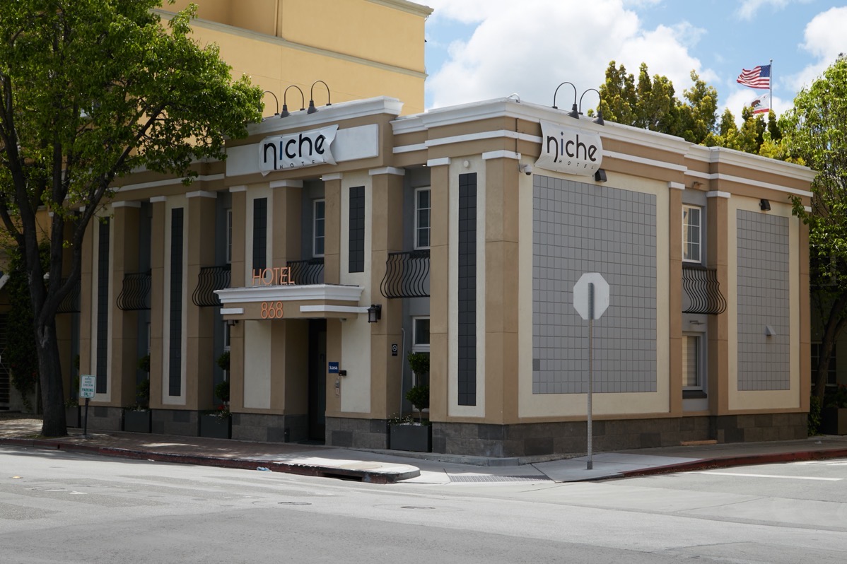 This new incarnation of the hotel located at 868 Main Street is now called the Niche Hotel. It sports rooms with King, Queen, or Full beds. The rooms still seem small, but they do appear to have a pretty complete set of amenities, including flat-screen televisions, WiFi, and in-room fridges, coffeemakers, and safes. The bathrooms, although small, appear to use high-end materials and designs, so I expect that guests will be quite comfortable. Whether you are visiting for business or for pleasure, the Niche Hotel in Redwood City seems well worth investigating.