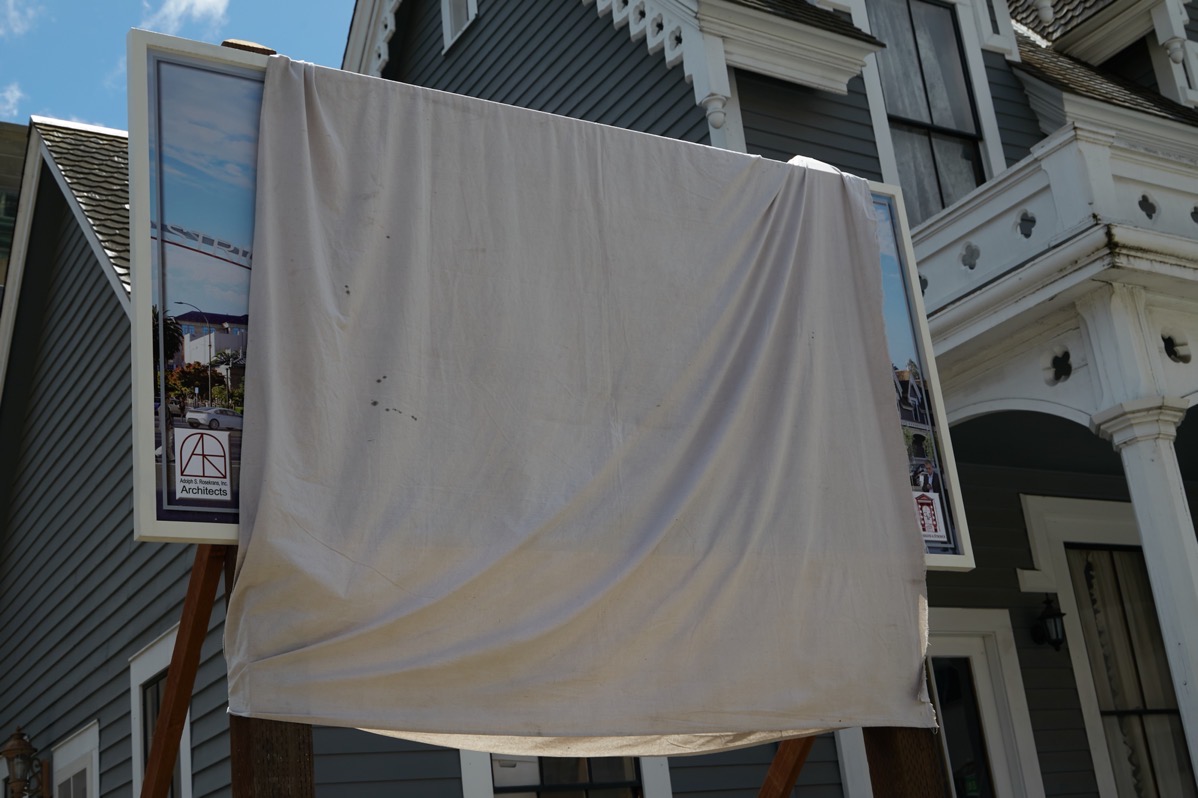 And just across Marshall Street from this project an alert reader let me know that a sign appears ready for unveiling next to the Lathrop House. They and I are both guessing that this sign will trumpet the upcoming project to build a carriage museum on the small parking lot adjacent to the house.